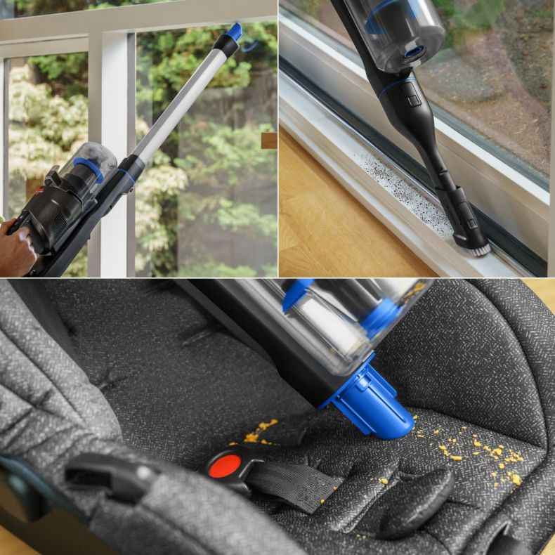 Passa facilmente dall'aspirapolvere alla modalità portatile e al formato estensibile in altezza per pulire dal pavimento al soffitto