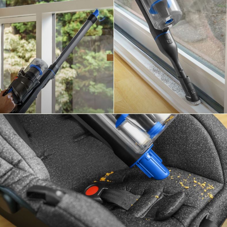 di pulire con comodità tappeti, pavimenti duri e interni di auto. Grazie alla