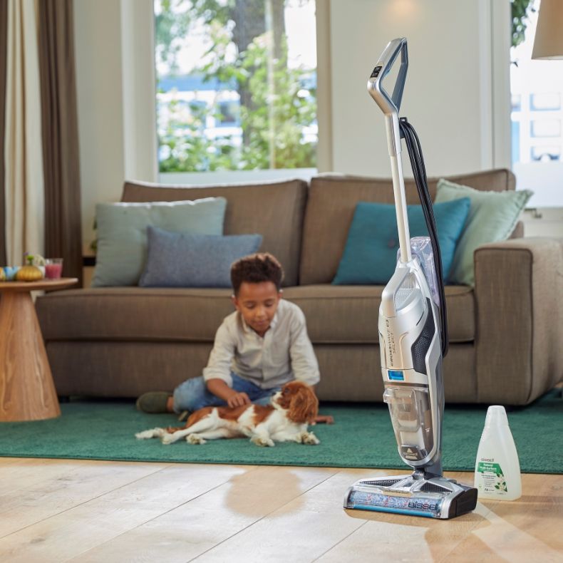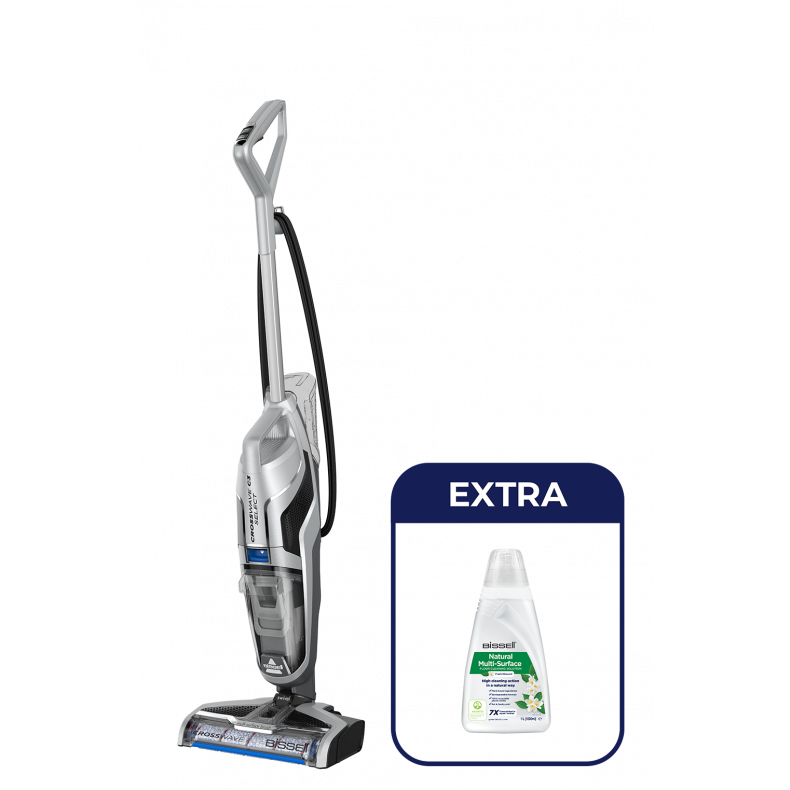 Il CrossWave® C3 Select aspira, lava e asciuga allo stesso tempo. Garantisce una potente eliminazione di macchie secche e umide. Ideale per la pulizia periodica di superfici diverse, quali pavimenti duri e tappeti, e per far fronte a piccoli e grandi "guai" sui tuoi pavimenti. Un pannello elettronico, da controllare con il tocco delle dita, consente di passare immediatamente da un tipo di superficie all'altra e rilasciare la quantità di acqua che ti serve. A differenza di quanto avviene con secchio e straccio, la nostra tecnologia a doppio serbatoio mantiene l'acqua pulita separata dall'acqua sporca. Questo significa che con CrossWave® C3 Select lavi sempre i tuoi pavimenti con acqua pulita. Inoltre, con il sistema di gestione degli odori FreshStart™, la spazzola rotante antimicrobica e il filtro lavorano costantemente per prevenire gli odori e mantenere fresca l'aria. La soluzione detergente naturale multi-superficie (1 L) fornita in dotazione elimina gli odori lasciando la tua casa profumata di fresco. Quando finisci di pulire i pavimenti, il ciclo di auto-pulizia pulisce non soltanto la spazzola rotante, ma anche l'interno dell'apparecchio, così potrai evitare di lavarlo.