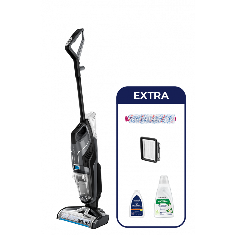 Liberati delle restrizioni di fili e cavi con il pulitore multi-superficie BISSELL® CrossWave C6 Cordless Pro Wet & Dry. Ideale per la pulizia periodica di routine, così come per gli incidenti che normalmente si verificano con una famiglia attiva. Con oltre 25 minuti* di funzionamento ininterrotto, consente di aspirare, lavare e asciugare contemporaneamente più stanze e tipologie di pavimento. E, a differenza di quando usi straccio e secchio, la nostra tecnologia a doppio serbatoio mantiene l'acqua pulita separata da quella sporca. Quindi, con CrossWave® C6 Pro, pulisci sempre i tuoi pavimenti con una soluzione fresca. Il sistema di gestione degli odori FreshStart™ fa sì che la spazzola rotante antimicrobica e il filtro lavorino costantemente per prevenire gli odori e mantenere la freschezza. La soluzione detergente naturale multi-superficie (1 L) fornita in dotazione elimina gli odori lasciando la tua casa profumata di fresco. Quando hai terminato con i pavimenti, il ciclo di autopulizia, con l'aiuto della soluzione per il ciclo di pulizia FRESHSTART™ (236 ml), non solo deterge la spazzola rotante, ma anche l'interno della macchina, in modo tale che tu non debba pensare a niente dopo le pulizie.