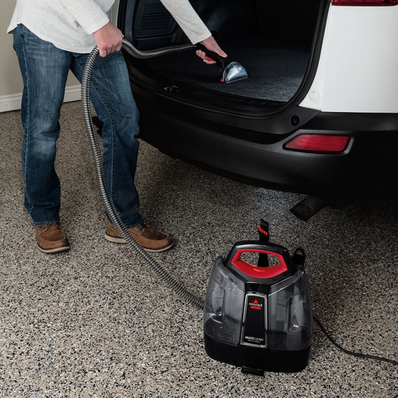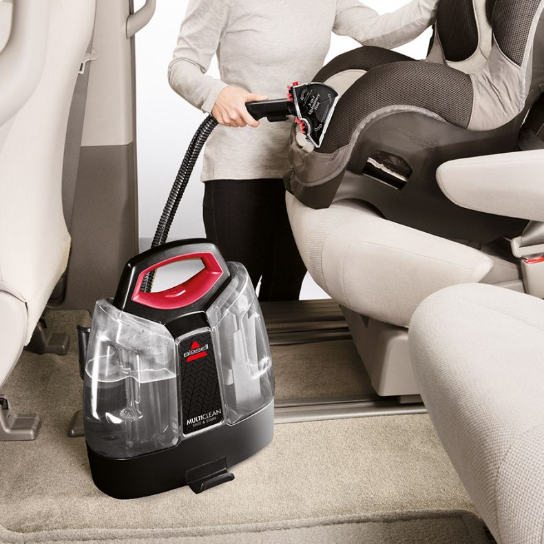 BISSELL® MultiClean TM Spot & Stain Portable Carpet & Upholstery Washer è una macchina pulitrice progettata per rimuovere in modo efficace sabbia, sporco e residui dall'auto e far tornare le sedute e la tappezzeria come nuove. Il tubo lungo e flessibile e gli accessori forniti in dotazione sono pensati per raggiungere ogni angolo. Rimuove lo sporco e le macchie usando semplicemente l'acqua, 2 formule speciali di BISSELL e 4 accessori di pulizia specifici per garantire la massima potenza di aspirazione. Dispone di un tubo flessibile particolarmente lungo (2,20 metri) per raggiungere diverse aree della casa e dell'auto. Il pulitore è provvisto di due serbatoi dell'acqua rimovibili che si riempiono e si svuotano facilmente, agevolando il processo di pulizia. Con Spot & Stain, dispositivo leggero e portatile, finalmente è possibile eliminare le macchie in modo facile e veloce.