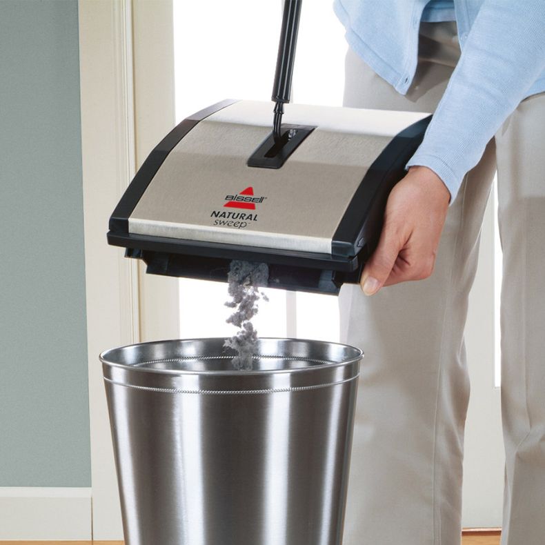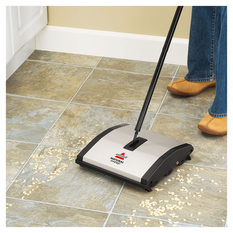 BISSELL Natural Sweep, leggera e compatta, è pensata per pulire in modo efficace moquette e pavimenti duri senza dover passare nuovamente l'aspirapolvere. La scopa è dotata di due spazzole rotanti principali e 4 spazzole più piccole ubicate sugli angoli dell'elemento pulente per catturare lo sporco lungo i bordi e gli angoli. Il sistema con 6 ruote si regola automaticamente per una pulizia ottimale di tutte le superfici