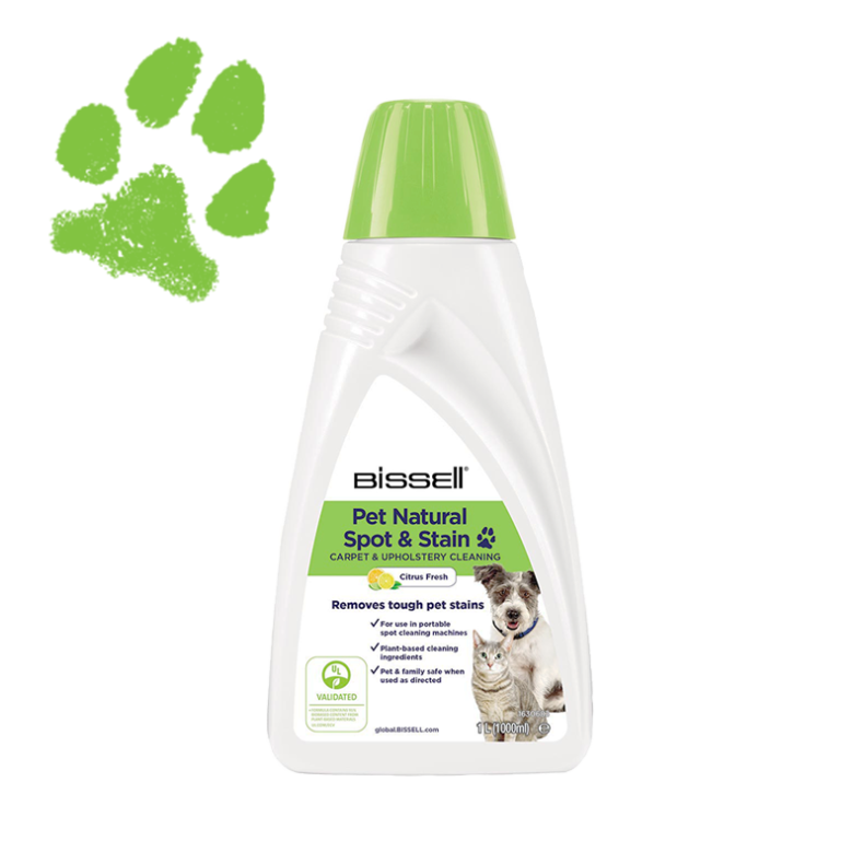 La soluzione detergente naturale BISSELL® Spot & Stain per lavamoquette portatili, pensata per case con animali domestici, può vantare una formula di origine vegetale che rimuove efficacemente da diverse superfici lo sporco e gli odori ostinati causati da animali domestici. Con una formula eco-compatibile e la nostra tecnologia brevettata per l'eliminazione degli odori, questa soluzione detergente lascia la tua casa profumata di fresco e pulito, senza ricorrere a ingredienti nocivi per la salute di bambini e animali domestici.