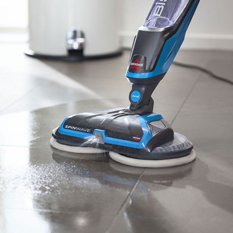 Lo SpinWave di BISSELL permette di fornire il giusto livello di soluzione detergente sui pavimenti con un pulsante spray facile da usare.