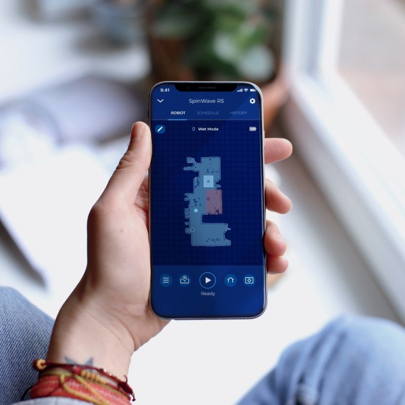 BISSELL® SpinWave® R5 . Pulizia 2 in 1: aspira efficacemente e lava attivamente in un'unica passata con il robot aspirapolvere lavapavimenti BISSELL® SpinWave® R5. Durante il lavaggio, la rotazione dei panni strofina i pavimenti duri sigillati per rimuovere lo sporco, mentre la potente aspirazione elimina polvere e detriti per una facile pulizia quotidiana. Inoltre, puoi personalizzare le modalità e i tempi di pulizia grazie alla mappatura della casa e alla tecnologie di navigazione LiDAR a 360 gradi. Questo robot aspirapolvere lavapavimenti intelligente è persino dotato di un sensore di riconoscimento delle superfici morbide, che lo terrà lontano dalla moquette mentre è in modalità Mop. La potente batteria agli ioni di litio garantisce fino a 110 minuti di autonomia*: il tuo robot aspirapolvere lavapavimenti SpinWave® R5 può continuare a pulire mentre ne tu approfitti per riposare!