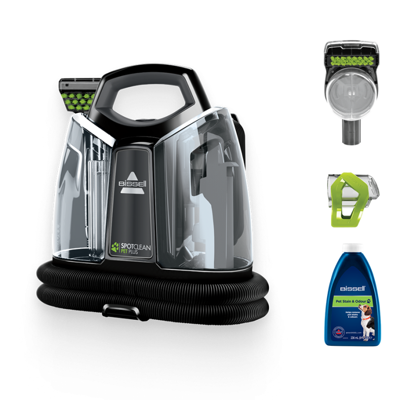 Preparati per i danni imprevisti e gli odori persistenti con la praticità di BISSELL SpotClean Pet Plus. Rimuovi in modo efficace sporco e macchie ovunque combinando acqua, soluzione detergente BISSELL e accessori di pulizia specifici con una grande potenza di aspirazione. SpotClean Pet Plus con il suo Tubo extra-lungo da 2,2 m è facile da portare in aree difficili da raggiungere, così potrai rimuovere sporco e macchie da aree ad alto traffico come moquette, tappeti e scale, e da a tutti i tipi di superfici morbide, divani, interni dell'auto e molto altro ancora. Questa macchina compatta è dotata di una tecnologia a doppio serbatoio, progettata per mantenere l'acqua pulita e la soluzione detergente separate dall'acqua sporca, per pulire in tutta serenità, avendo la certezza di non usare mai acqua sporca. L'accessorio di 8 cm per macchie ostinate lavora per ammorbidire e rimuovere le macchie di tutti i giorni. L'accessorio Stain Trapper nebulizza, strofina e aspira le sorpresine indesiderate e maleodoranti dei tuoi animali domestici lasciandole dentro l'accessorio e all'esterno della macchina. Usa l'accessorio HydroRinse per pulire facilmente l'apparecchio dopo l'uso. Inoltre, ogni acquisto contribuisce a salvare animali. BISSELL è orgogliosa di sostenere la BISSELL Pet Foundation® e la sua missione nel salvare gli animali domestici senza una casa.